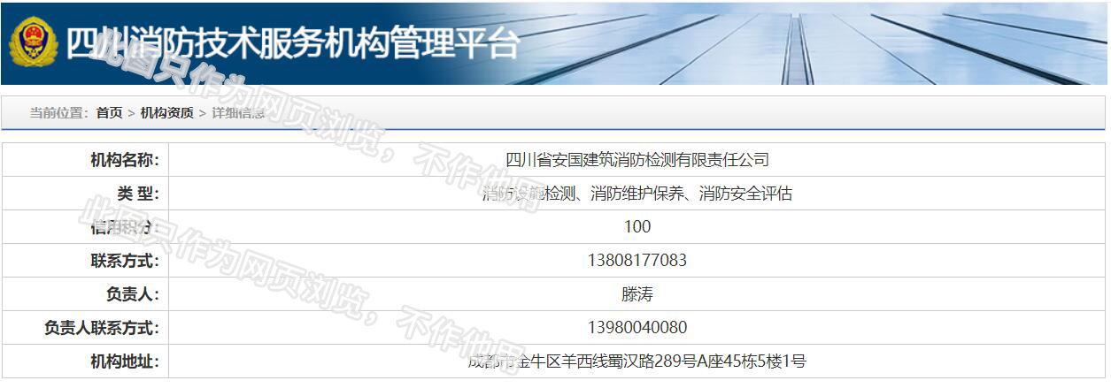 四川省安國建筑消防檢測有限責任公司,成立于1998年,經(jīng)四川省公安消防總隊批準,工商部門注冊的獨立法人單位。 公司具有建筑消防設施檢測、電氣防火安全檢測、維修、保養(yǎng)及技術咨詢一級資質(zhì)的中介技術服務機構,獲得CMA計量認證。主要業(yè)務范圍是:接受建設單位或有關單位委托,承擔新建、改建、擴建建筑自動消防設施技術檢測、電氣防火安全檢測、以及承接建筑消防設施維護保養(yǎng),對已交付使用的建設消防設施的運行情況進行運行檢測,開展建筑消防設施的消防安全技術咨詢。公司設辦公室、總工辦、財務部、檢測部、維保部等職能機構,擁有一